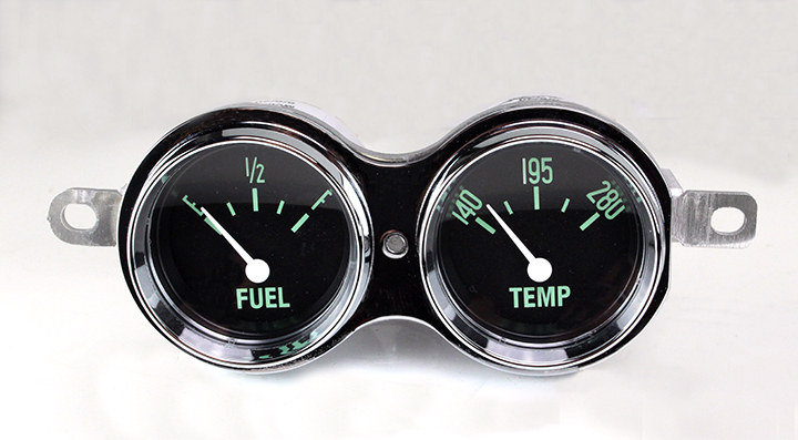 This 1958-62 Corvette retro-fit gauge is ready to drop into your dash. Simply send us your existing cluster as a core and we will ship you this completed cluster, as shown, so you can skip the 3-week wait. Include speedometer, tach, 4 small gauges, and a clock.