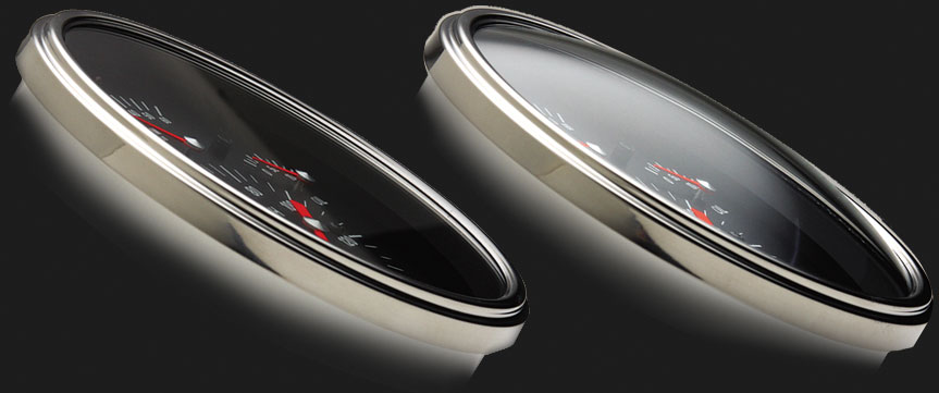 1957 Chevy White Package 4 5/8" Speedometer 140 MPH, Tachometer 8,000 RPM, Oil, & Volt 2 1/8" Fuel (0-30 OHM), & Temp with Stainless Low Step Bezel Flat Glass Lens