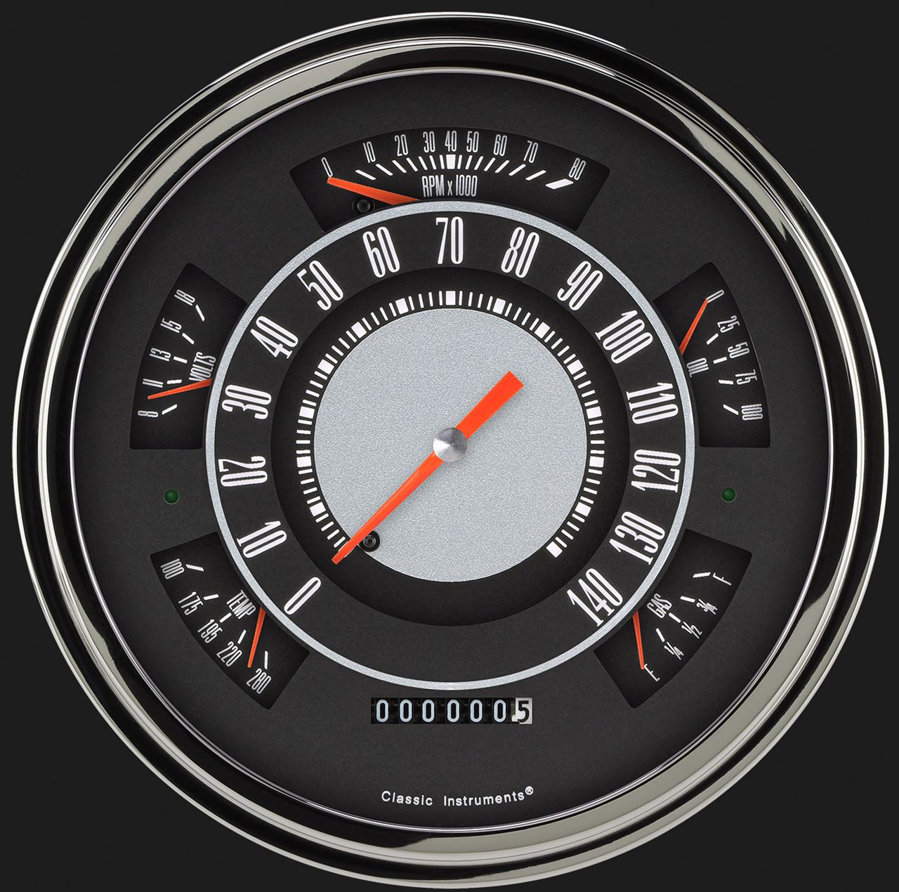 • LED lighting with built-in LED dimmer, and molded “light intensifier” ring for bright, even lighting. Brightness of the LEDs can be adjusted with a potentiometer on the back of the cluster