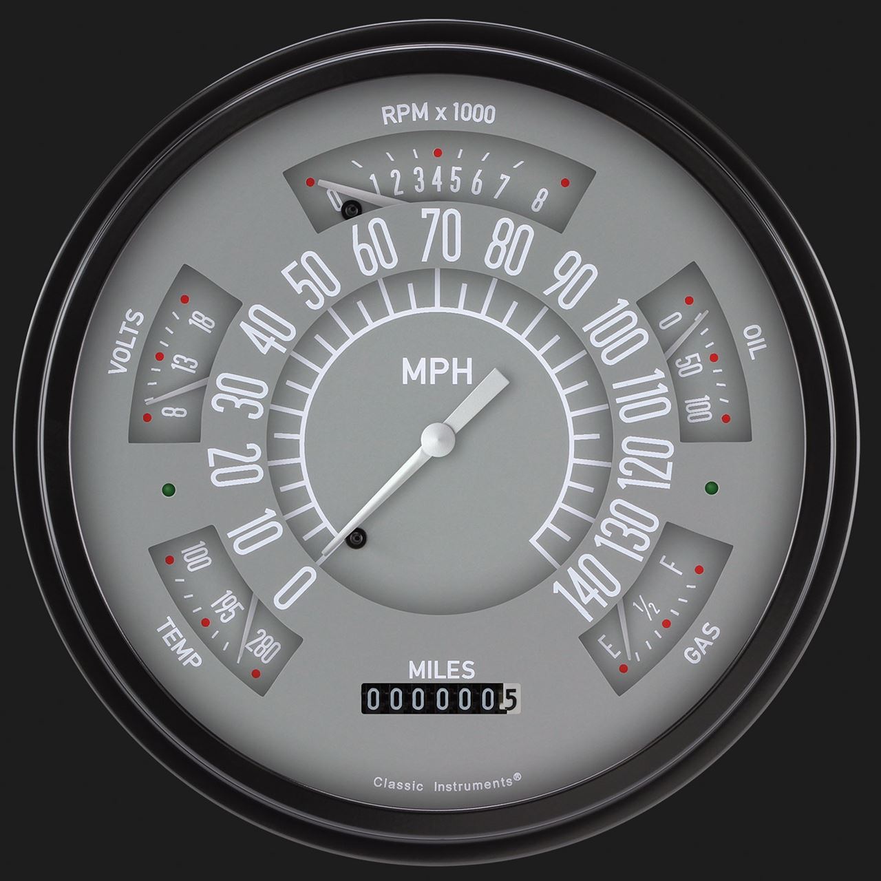 • LED lighting with built-in LED dimmer, and molded “light intensifier” ring for bright, even lighting. Brightness of the LEDs can be adjusted with a potentiometer on the back of the cluster